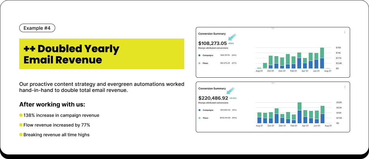We build email & SMS systems that consistently drive 30-50% of total revenue for our clients—turning casual buyers into loyal, long-term fans. Our specialty?